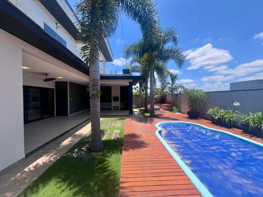 Casa de alto padrão com arquitetura imponente e ambientes amplos. Piso térreo com 2 suítes (máster com closet e banheiro duplo + suíte com banheira), sala de estar com pé-direito duplo, sala de jantar, lavabo, cozinha planejada, copa, despensa e área de serviço com suíte de empregados. Área gourmet completa com churrasqueira e banheiro externo. No piso superior, sala íntima com varanda e 3 suítes espaçosas. Acabamentos de altíssimo padrão em todos os ambientes. Lazer completo para toda a família! ✨ O condomínio oferece uma infraestrutura incrível para momentos de diversão, esporte e relaxamento: 🌳 Linda praça arborizada com árvores frutíferas e lago ⚽ 2 campos de futebol 🏀 2 quadras poliesportivas e 2 quadras de tênis 🛹 Pista de skate 🎠 Playground infantil 🏋 Academia equipada 🧘 Espaço para Pilates 🎉 Salão de festas Tudo pensado para proporcionar qualidade de vida, bem-estar e lazer para todas as idades! 🔄 Avalia permuta! Agende uma visita!!!