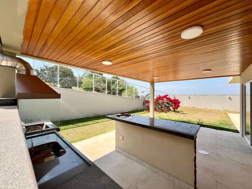 Casa toda planejada com vista panorâmica para Serra. Piso térreo: - ampla sala 3 ambientes bem iluminada com lavabo e ar condicionado; - escritório podendo ser revertido para dormitório; - cozinha integrada a sala e área gourmet toda equipada e planejada com bancada com cooktop, coifa, forno elétrico e microondas; - espaçosa área goumet com integração a cozinha e piscina com linda vista da serra; - piscina com amplo quintal, sacada com ofurô e fechamento em vidro com uma vista incrível da serra; - lavanderia ; - 2 vagas cobertas. Piso superior: - 3 amplas suites, todas repletas de armários planejados e ar condicionado. - suíte master com closet, hidromassagem e ampla sacada com vista da serra; - som ambiente na suite master, área gourmet, salas, piscina e no deck; - sistema de câmera e alarme; - 2 caixas d`agua de 1.000 litros e boiler de 500 litros; - 3 quadros de força com DR. Lazer do condomínio: 3 Quadras de Beach Tênis, 2 Tênis de saibro, 1 Quadra Poliesportiva, 1 Campo de Futebol com grama sintética, Parquinho, Play pet, Pista de caminhada, LiveMarket. Agende uma visita!