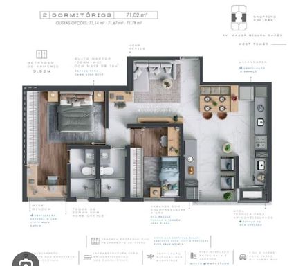 ✨ Apartamento com 2 dormitórios, sendo 1 suíte, com infraestrutura para ar-condicionado nos quartos.