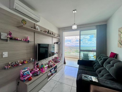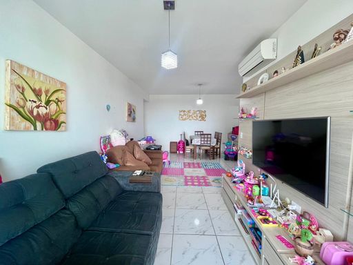 Sala ampla para 2 ambientes, bem arejada, com ar-condicionado, integrada à varanda gourmet com fechamento em vidro e linda vista definitiva.