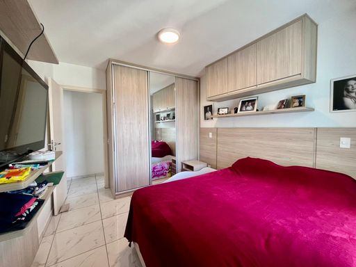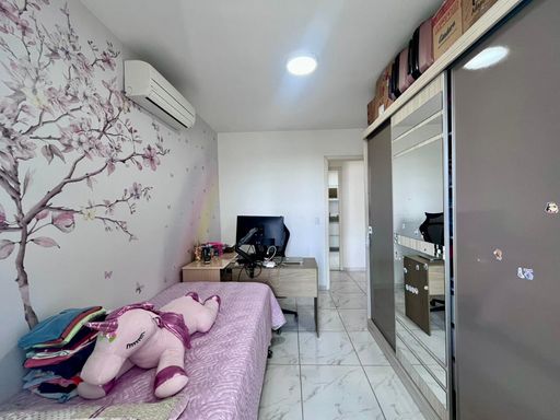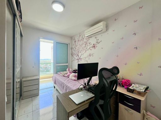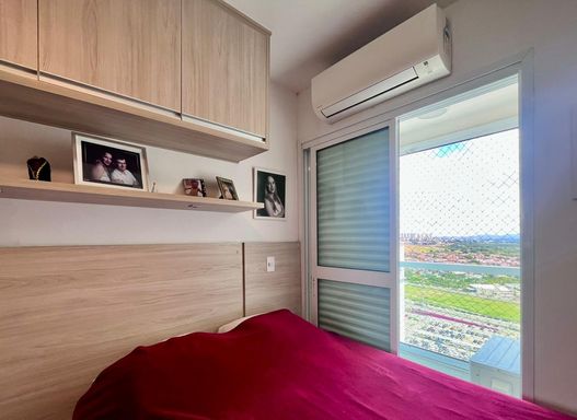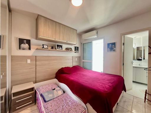 2 dormitórios com ar-condicionado, sendo 1 suíte com armários planejados e sacada.
