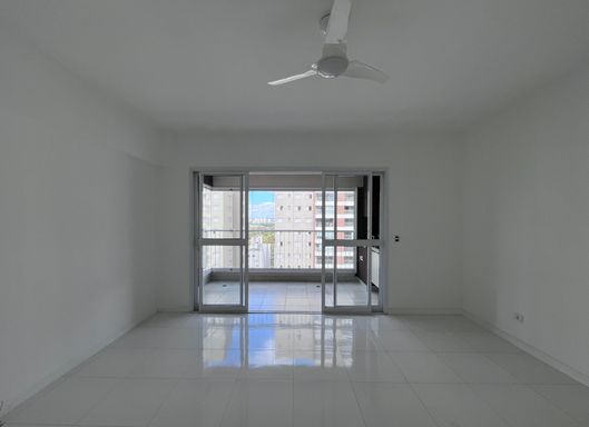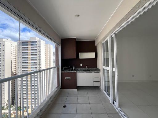 Sala integrada à ampla varanda gourmet (andar alto, com fechamento em vidro)