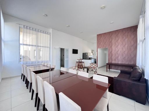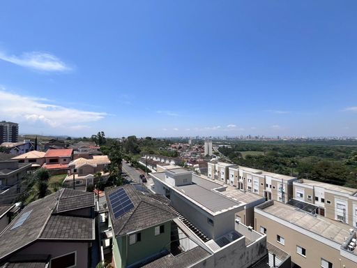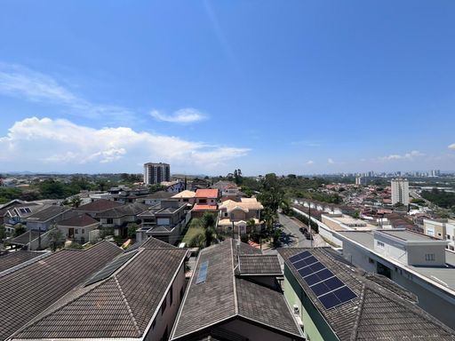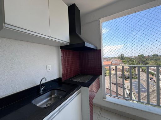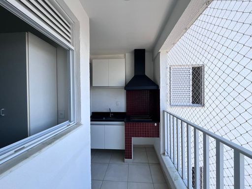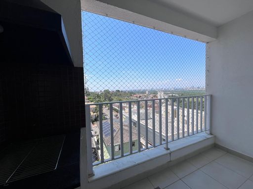 Sala com sacada e churrasqueira, oferecendo uma vista livre e definitiva.
