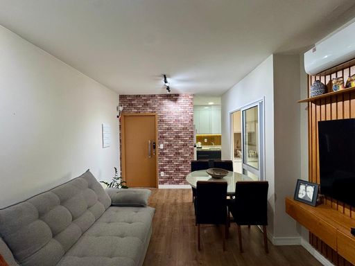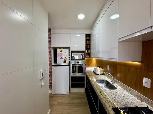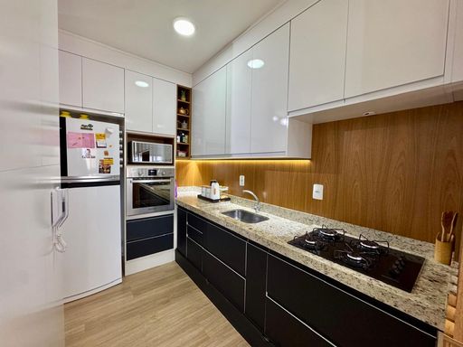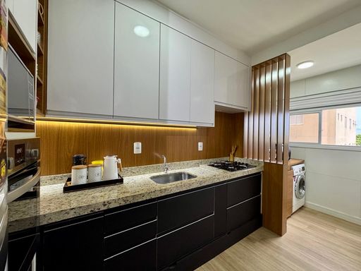 O imóvel conta com 3 dormitórios, sendo 1 suíte, todos com móveis planejados, garantindo organização e aproveitamento inteligente dos espaços. Sala ampla, integrada para dois ambientes, com projeto moderno e planejado. Cozinha totalmente planejada, funcional e elegante, além de banheiro social, área de serviço e ótima ventilação natural.