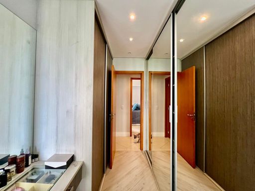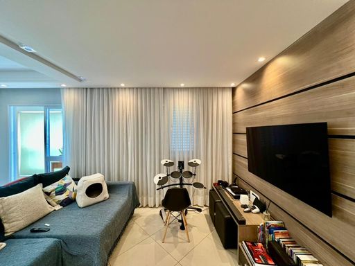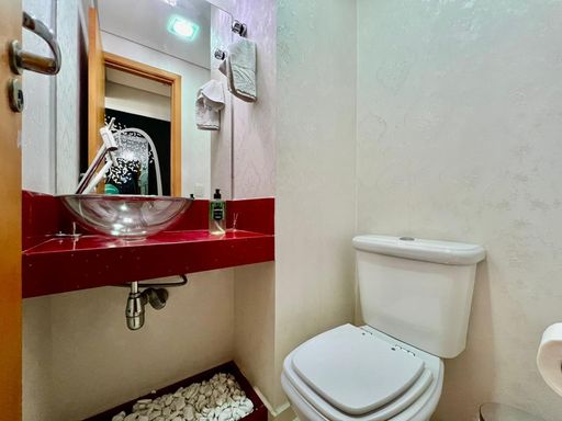 Muito bem distribuído, com sol da manhã e vista livre. A sala para dois ambientes conta com piso em porcelanato e lavabo, integrada a uma ampla área gourmet com fechamento em vidro, ideal para receber amigos e família.