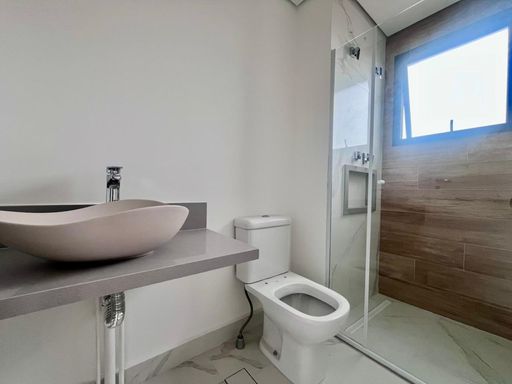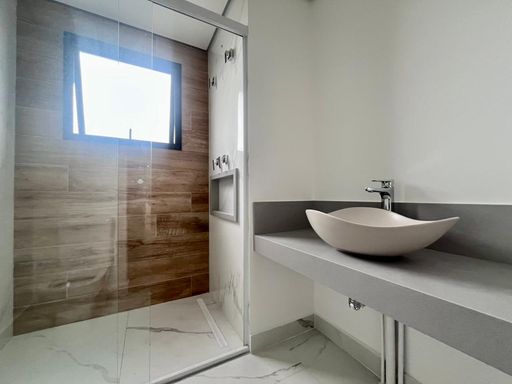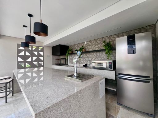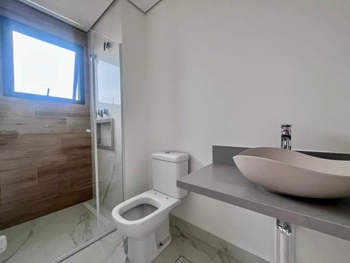 Acabamentos de alto padrão, com piso em porcelanato, bancadas em pedra São Gabriel e banheiros com box já instalados, trazendo elegância e funcionalidade ao imóvel.