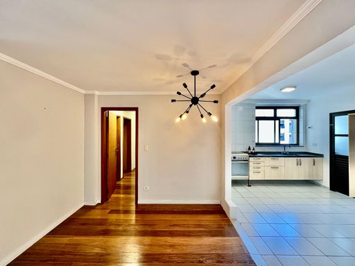 Planta inteligente com cozinha integrada à sala, trazendo amplitude e iluminação natural;