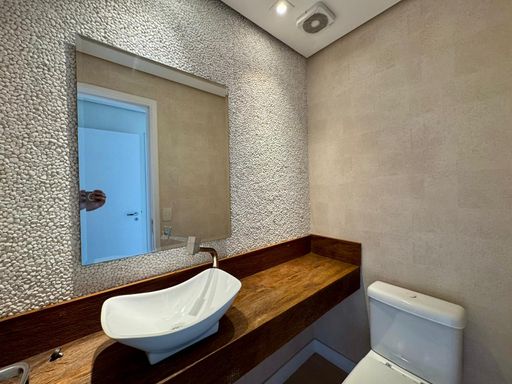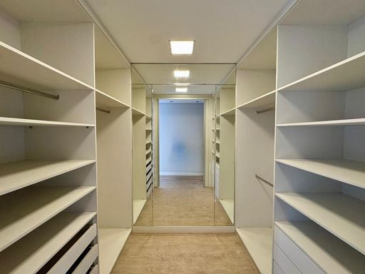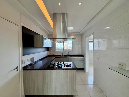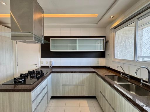 A cozinha é um grande diferencial: totalmente planejada, com pia em formato U (seca e molhada), infraestrutura elétrica para cooktop em ilha e armários embutidos de alto padrão, ideal para quem valoriza
