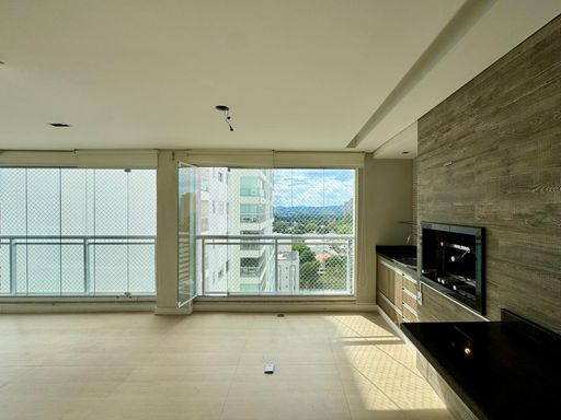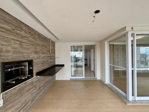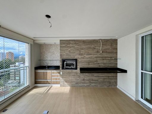 A sacada gourmet é um dos grandes destaques do imóvel, equipada com churrasqueira Giragrill, grelhas com altura ajustável e uma vista linda e definitiva para o Parque Vicentina Aranha — visível tanto da sacada quanto dos quartos, graças ao andar alto.