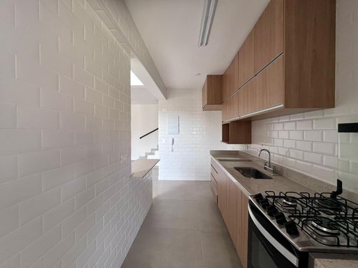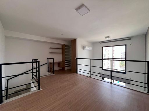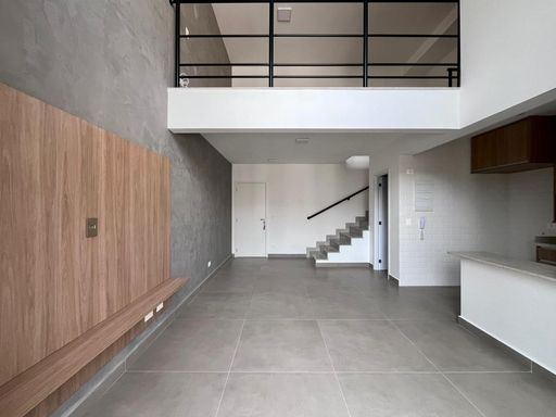 Com pé-direito duplo, este loft oferece amplitude, iluminação natural e uma vista encantadora para o bairro.