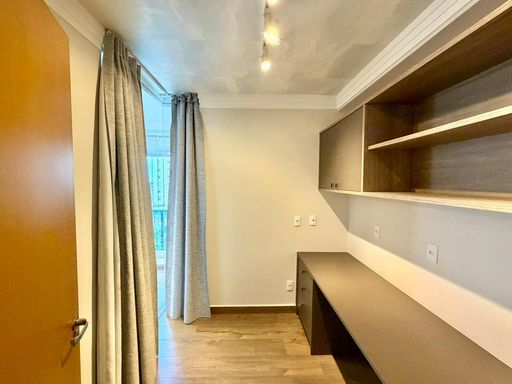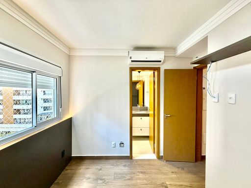 -1 dormitório suíte com armários planejados, ar-condicionado e cortina blackout;