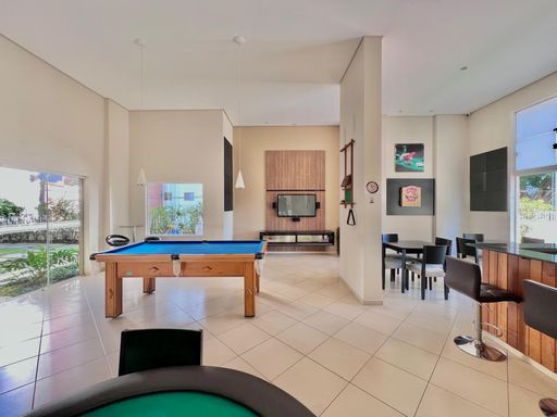 O Condomínio conta com lazer completo como: academia, quadra de tênis, quadra poliesportiva, sauna, piscina adulto e infantil, mini mercado, espaço mulher, pub, cinema, salão de festas, espaço gourmet, playground, salão de jogos e portaria presencial 24 horas.