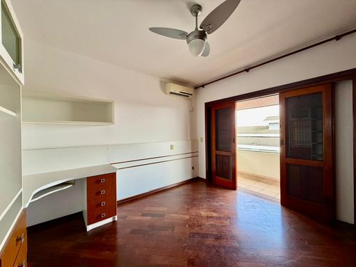 No piso superior, há uma sala de apoio versátil, que pode ser utilizada como escritório, sala de TV ou até mesmo um 4º dormitório. São 3 amplas suítes, todas com ar-condicionado, armários planejados e sacada. A suíte master se destaca pelo confortável closet.