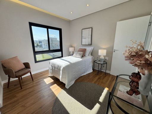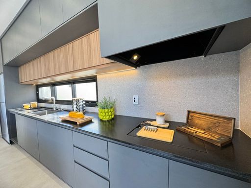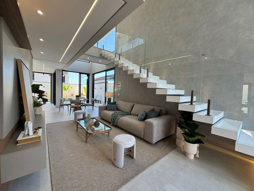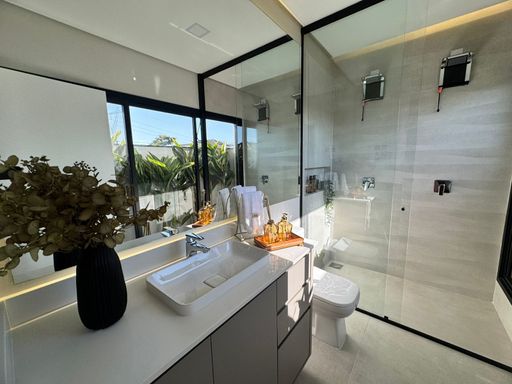 Diferenciais: iluminação em todos ambientes internos e externos, aquecimento solar/fotovoltaica, automação, câmeras, box e espelhos em todos os banheiros, infraestrutura para ar em todos ambientes, pisos e revestimentos Portobello, louças e metais Deca, paisagismo completo.