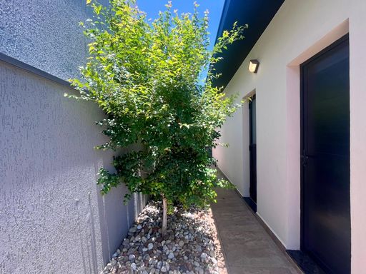 A casa conta ainda com aquecimento solar e sistema de energia fotovoltaica, garantindo eficiência energética e sustentabilidade sem abrir mão do conforto.