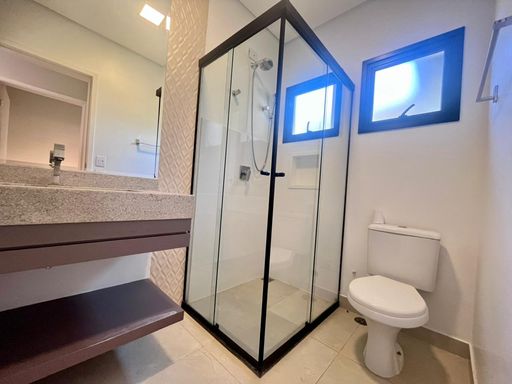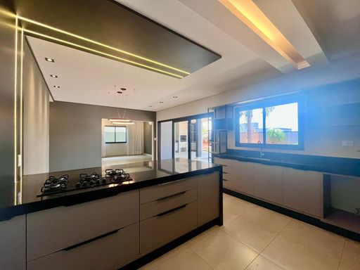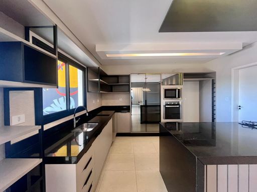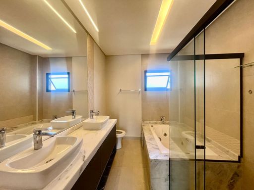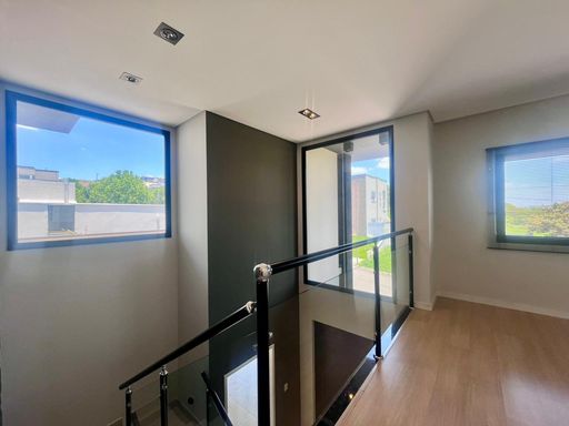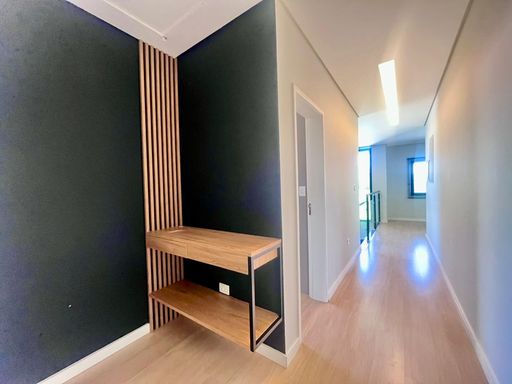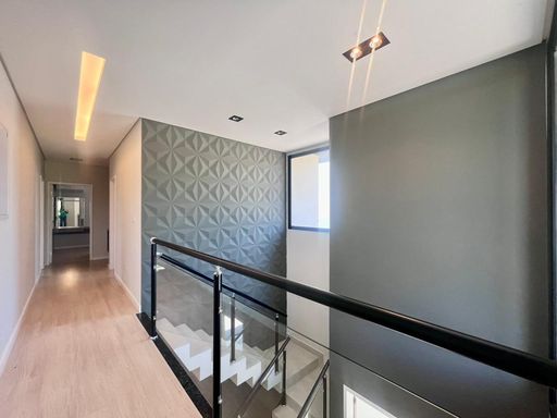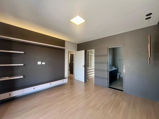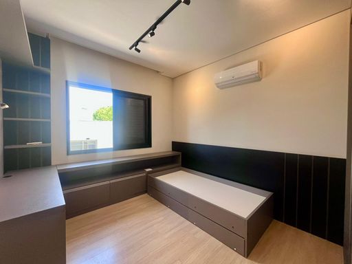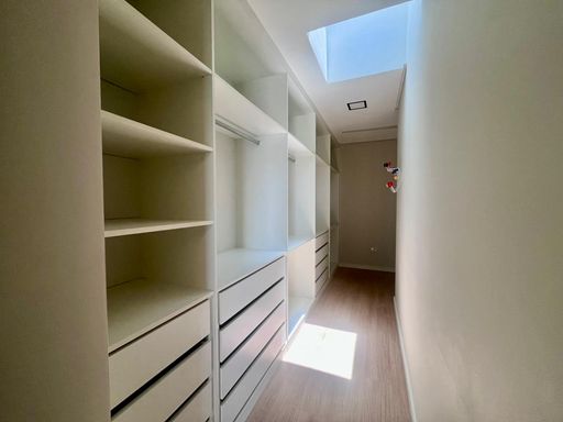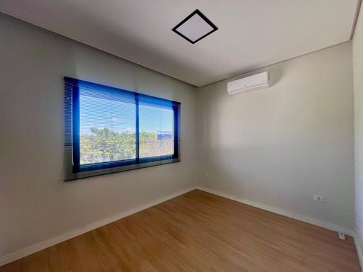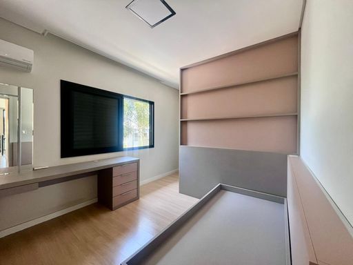 Com quatro dormitórios, sendo quatro suítes (uma delas adaptada como escritório no térreo), a casa oferece ambientes amplos, iluminados e climatizados, com armários planejados de excelente qualidade em todos os espaços.