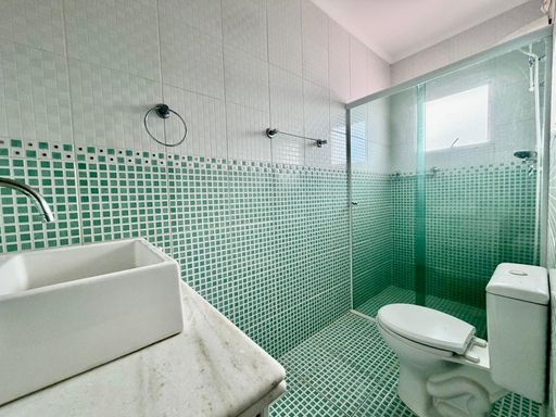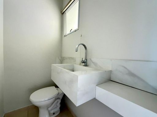 No piso superior, são 3 dormitórios planejados, sendo 1 suíte, além de 1 banheiro social.