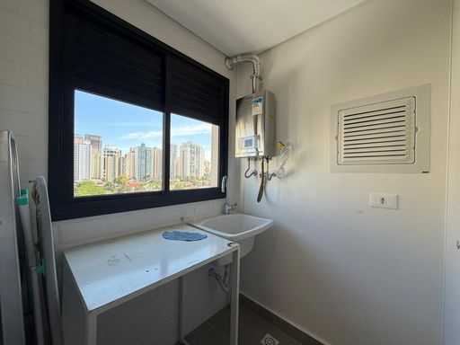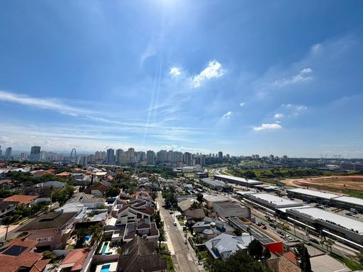 No piso inferior, você encontra uma ampla sala para dois ambientes, com acabamento em porcelanato, ar-condicionado e excelente iluminação natural. O espaço é integrado à cozinha e à sacada, proporcionando um ambiente arejado e funcional. Andar alto, com vista livre e privilegiada, além de sol da manhã.