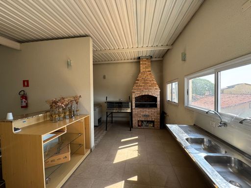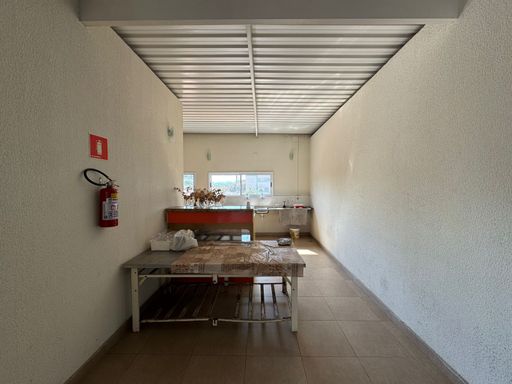 Pavimento superior: Amplo salão aberto, com área gourmet, churrasqueira e possibilidade de adaptação para diversos tipos de negócios ou eventos.