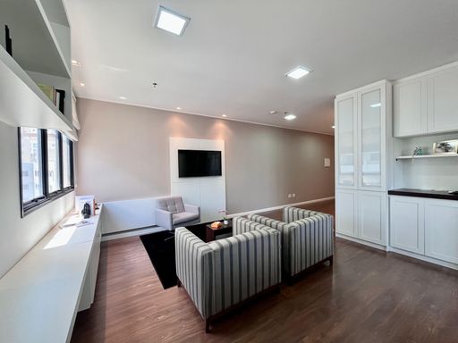Sala comercial totalmente planejada e mobiliada, pronta para iniciar suas atividades com praticidade e conforto.