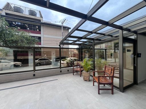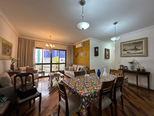 Sala para 2 ambientes, com ar-condicionado, lavabo e sacada ensolarada (sol da manhã);