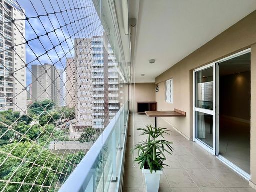 Sacada com fechamento em vidro e uma ótima vista para a praça ao lado