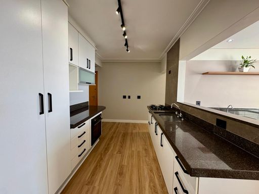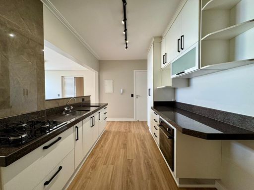 - Cozinha integrada com a varanda gourmet toda planejada e equipada com cooktop e forno;