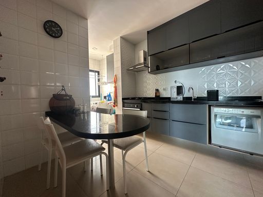- Piso de madeira nas áreas sociais e granito na cozinha;
