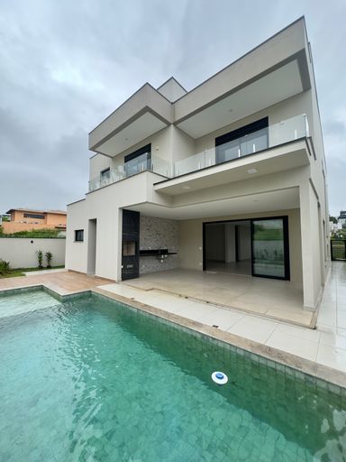 A casa conta com 4 suítes, área social integrada e um espaço de lazer completo com piscina e área gourmet, perfeito para receber amigos e família.
