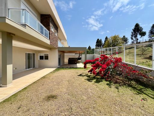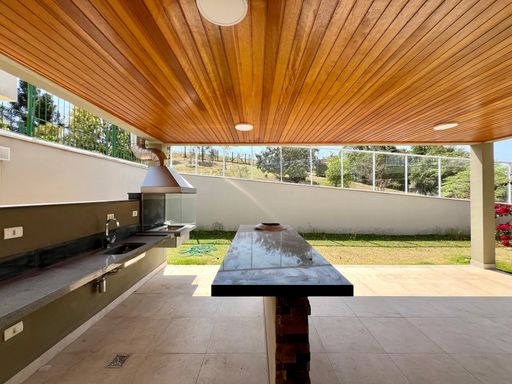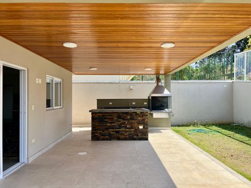 Amplo quintal gramado com varanda gourmet e vista livre para a área verde